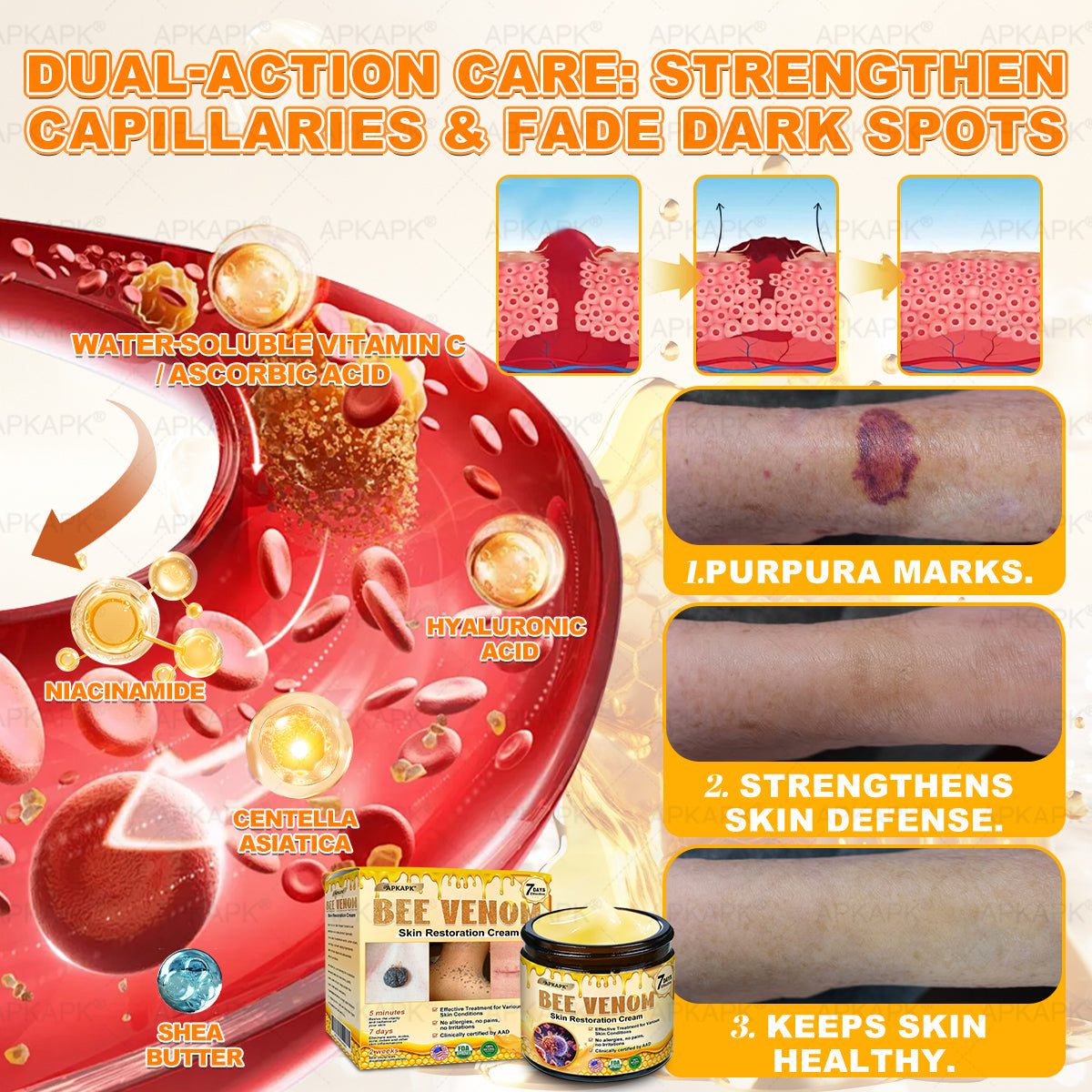 I felt embarrassed and nervous — even hugging my grandkids or carrying groceries made me worry. Out of desperation, I tried this 𝐀𝐏𝐊𝐀𝐏𝐊® 𝟖-𝐈𝐧-𝟏 𝐁𝐞𝐞 𝐕𝐞𝐧𝐨𝐦 & 𝐓𝐚𝐥𝐥𝐨𝐰 𝐒𝐤𝐢𝐧 𝐅𝐢𝐫𝐦𝐢𝐧𝐠 & 𝐓𝐫𝐞𝐚𝐭𝐦𝐞𝐧𝐭 𝐂𝐫𝐞𝐚𝐦… and wow, it worked far better than I hoped. Within days, the stubborn bruises started to fade, and new ones stopped forming. The formula is gentle — no burning, no greasy feel — and my skin is now softer, smoother, and more hydrated.